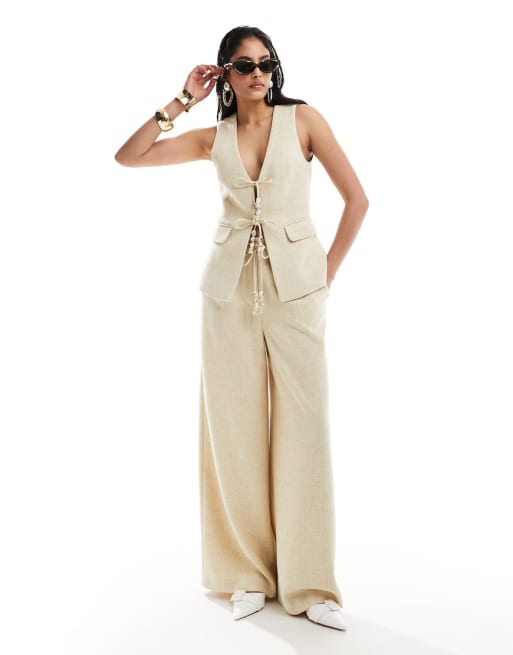 Ensemble texturé orné de perles avec détail noué - Crème