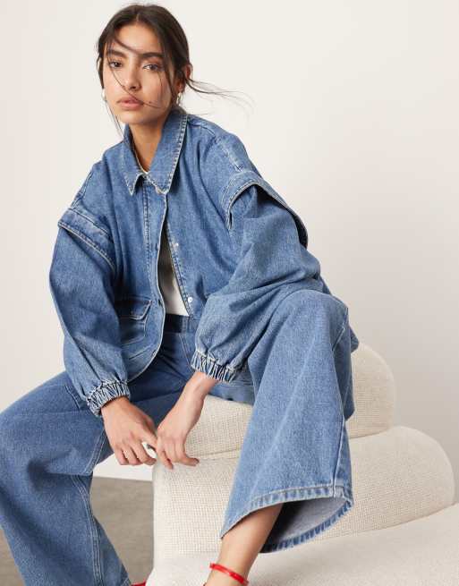 ASOS EDITION - Bomber en jean avec col - Bleu moyen