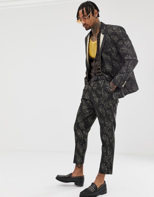 ASOS EDITION - Costume slim en jacquard - Doré et noir fleuri