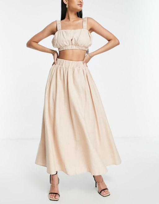 ASOS EDITION - Crop top et jupe longue en lin - Taupe