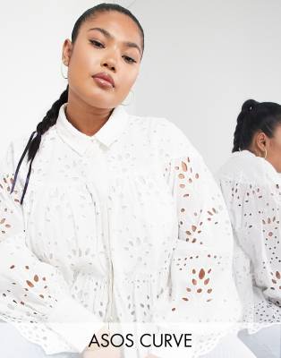 ASOS EDITION Curve - Chemise trapèze en broderie anglaise - Blanc