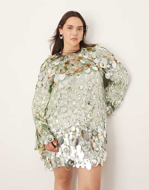 ASOS EDITION Curve - Robe courte et ample ornée de sequins superposés - Vert