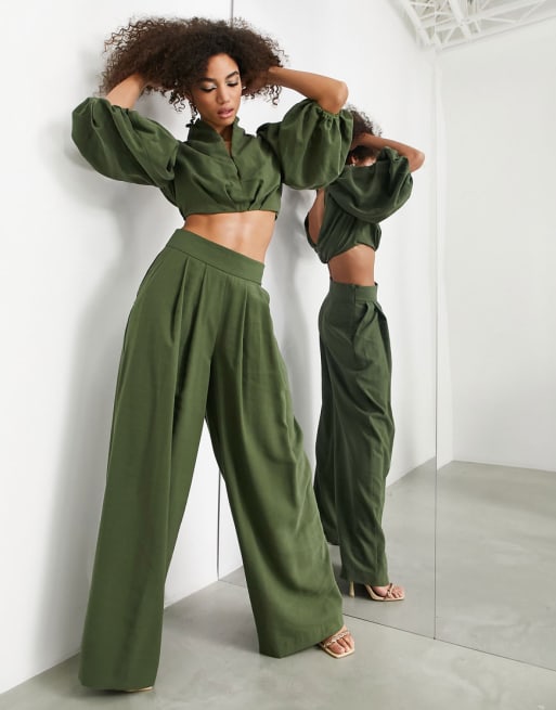 ASOS EDITION - Ensemble avec top dos nu et pantalon ample - Vert olive