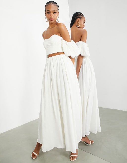 ASOS EDITION - Ensemble avec top plissé en lin et jupe longue - Ivoire