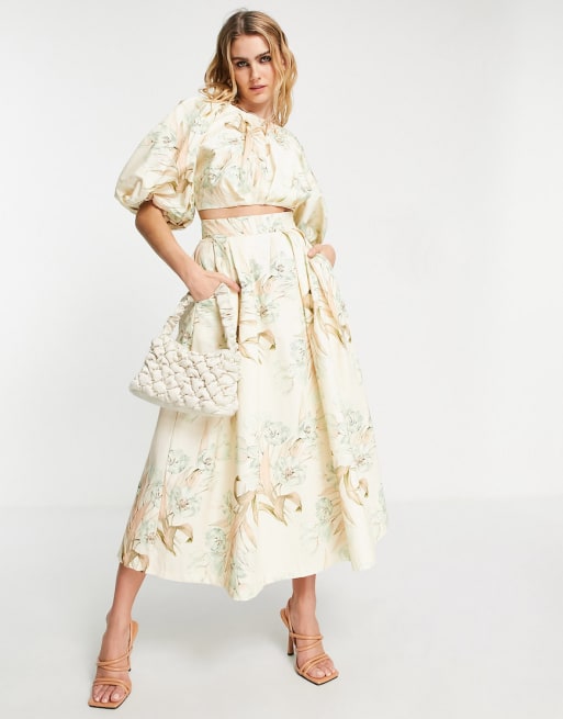 ASOS EDITION - Ensemble crop top et jupe mi-longue - Imprimé fleurs