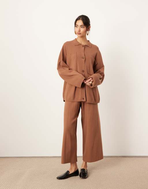 ASOS EDITION - Ensemble en maille avec pantalon et top boutonné - Caramel