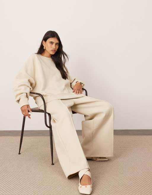ASOS EDITION - Ensemble épais de qualité supérieure avec pantalon de jogging ample et sweat à surpiqûres - Grège