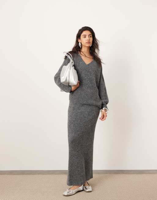 ASOS EDITION - Ensemble pull oversize à col V et jupe longue en maille - Anthracite