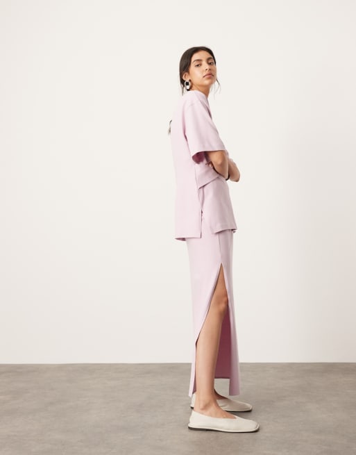 ASOS EDITION - Ensemble t-shirt texturé en jersey de qualité supérieure avec détail torsadé et jupe longue - Lilas