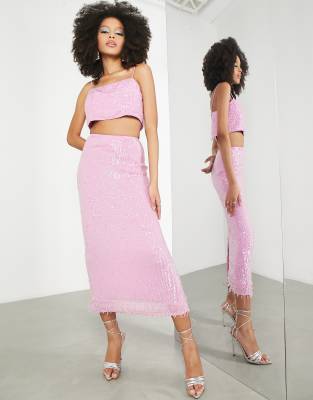 ASOS EDITION - Jupe fourreau mi-longue ornée de sequins - Rose