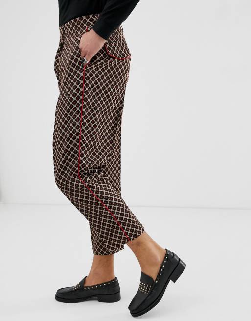 ASOS EDITION - Pantalon fuselé à entrejambe bas avec motif géométrique - Noir