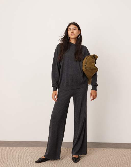ASOS EDITION - Pantalon large d'ensemble en maille de cachemire mélangée de qualité supérieure - Anthracite