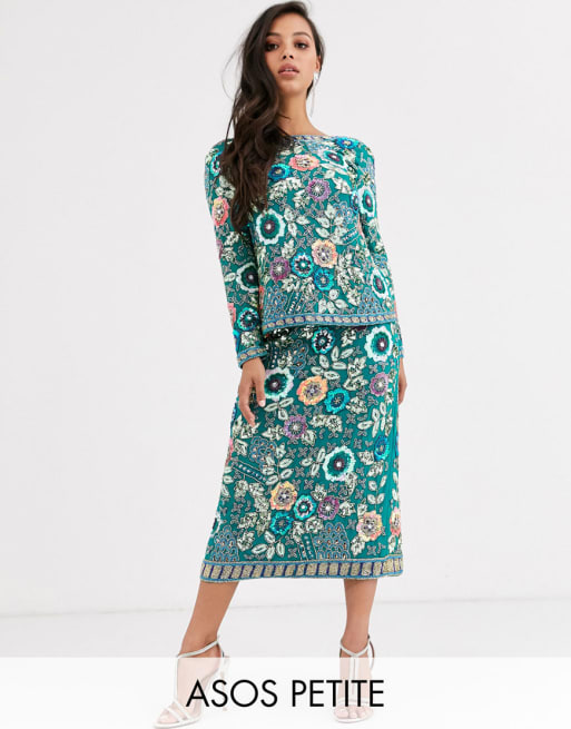 ASOS EDITION Petite - Ensemble jupe mi-longue et top orné de fleurs