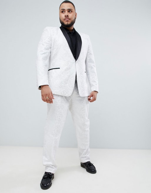 ASOS EDITION Plus - Smoking slim à ornements sequins et dentelle en satin - Blanc