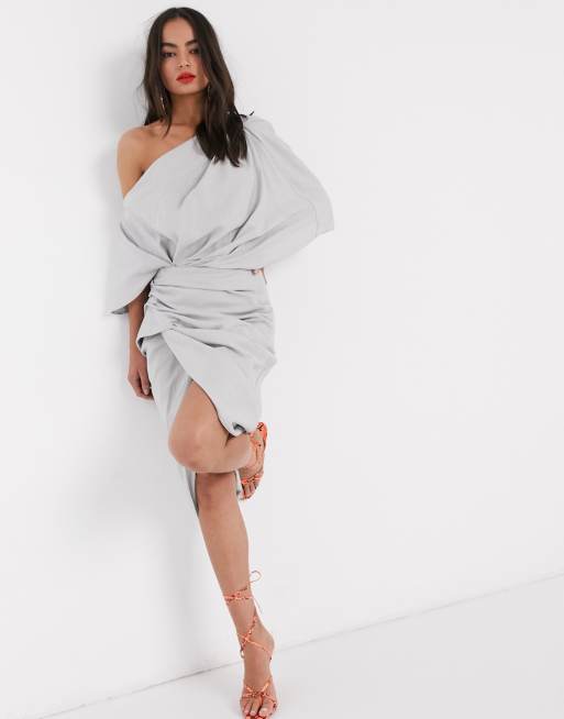 ASOS EDITION - Robe asymétrique mi-longue drapée en lin