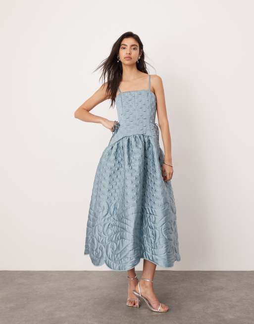 ASOS EDITION - Robe caraco mi-longue matelassée et brodée à taille basse - Bleu ardoise