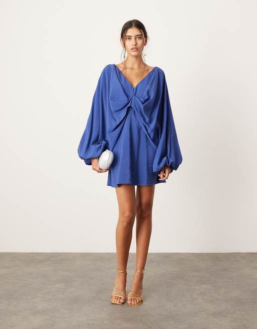 ASOS EDITION - Robe courte drapée à col V - Bleu