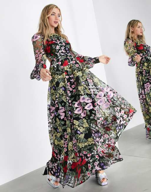 ASOS EDITION - Robe longue avec dos découvert et joli motif fleuri brodé