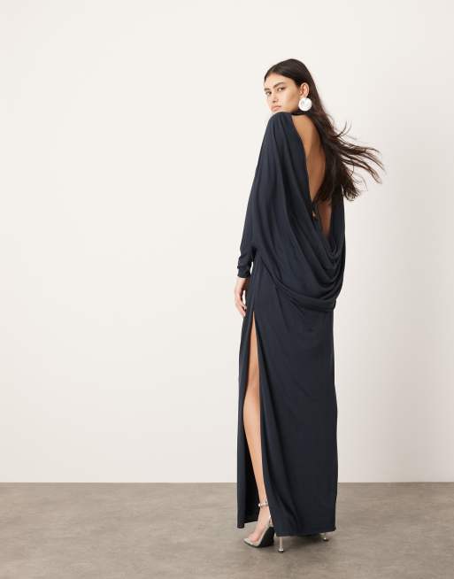 ASOS EDITION - Robe longue col montant de qualité supérieure à dos bénitier - Bleu foncé