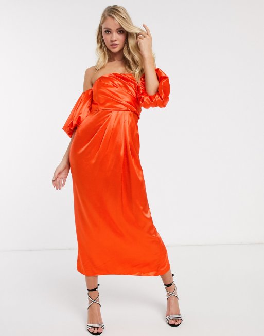 ASOS EDITION - Robe mi-longue asymétrique drapée en satin