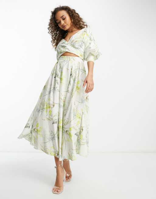 ASOS EDITION - Robe mi-longue croisée sur le devant en lin à imprimé fleurs