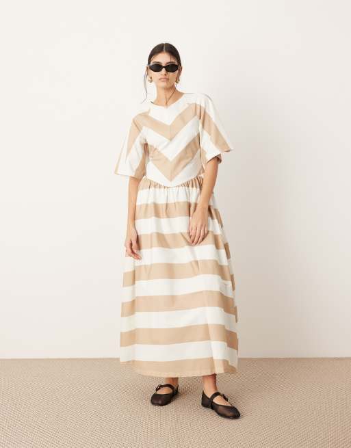 ASOS EDITION - Robe mi-longue taille basse à rayures larges et poches