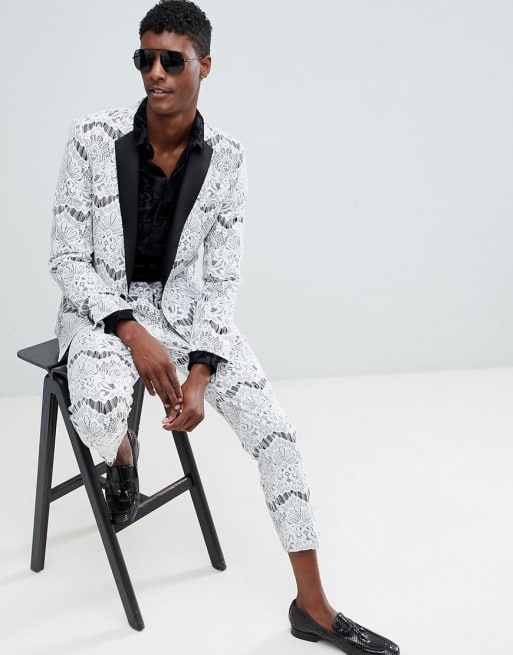 ASOS EDITION - Smoking ajusté en dentelle - Blanc