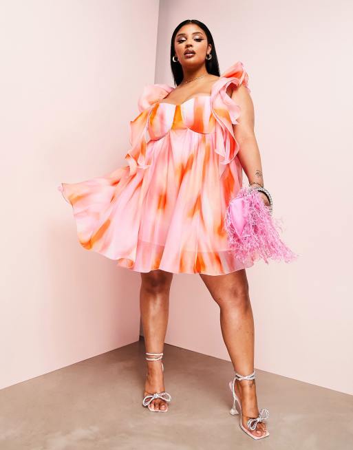 ASOS LUXE Curve - Robe babydoll courte et imprimée à bonnets préformés et épaules volantées