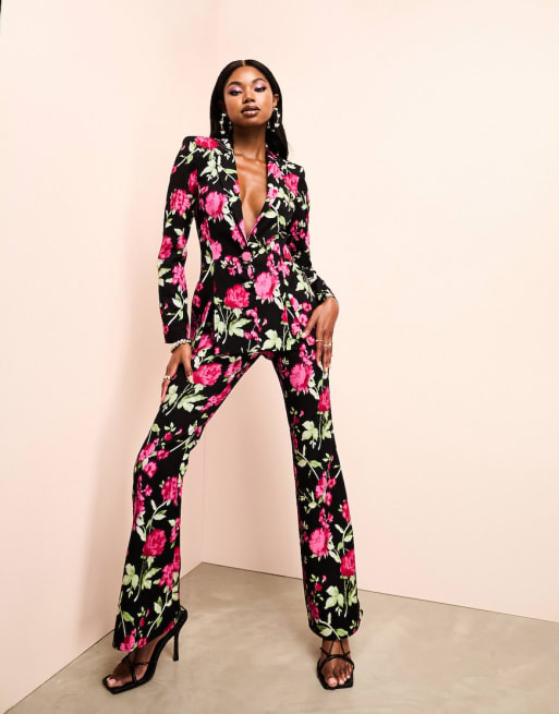 ASOS LUXE - Tailleur avec pantalon et blazer - Noir fleuri