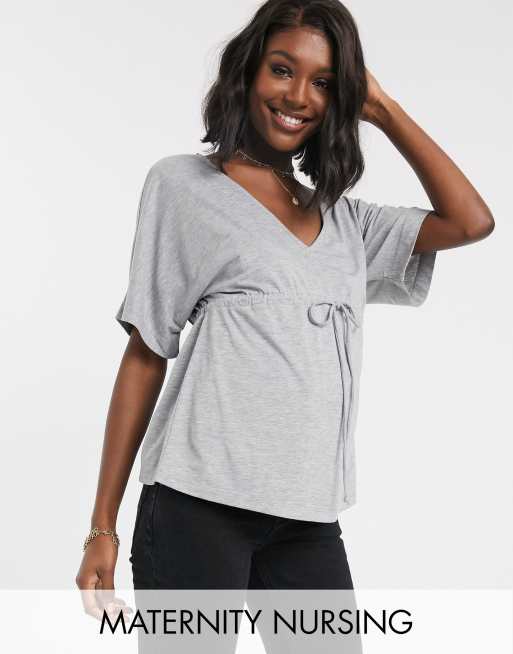 ASOS DESIGN Maternity - Top d'allaitement à cordon de serrage - Gris