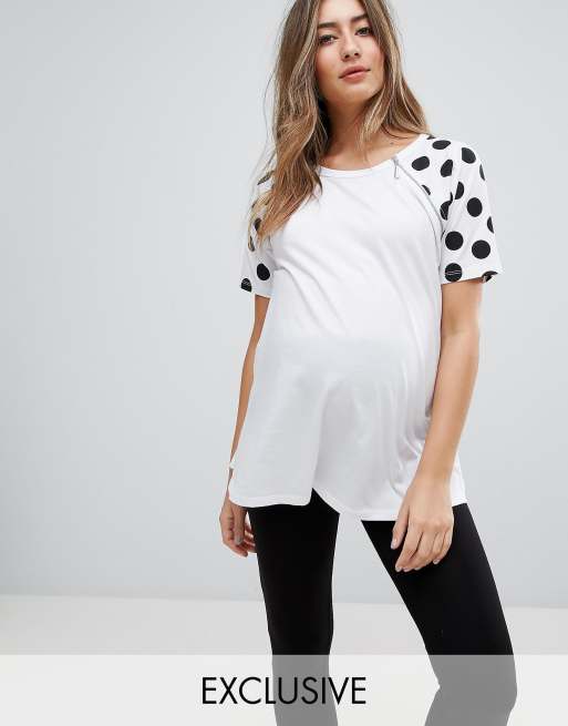 ASOS Maternity - T-shirt d'allaitement avec manches à pois et fermetures éclair