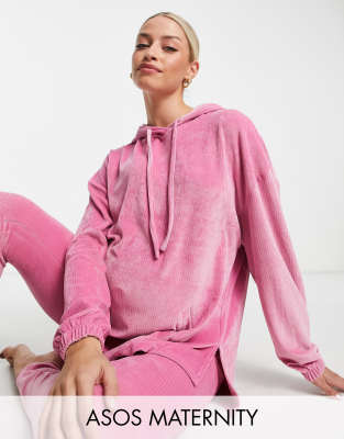 ASOS DESIGN Maternity - Ensemble confort avec legging et sweat à capuche en velours - Rose