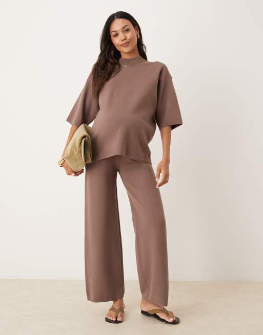 ASOS DESIGN Maternity - Ensemble t-shirt oversize structuré et pantalon en maille - Moka