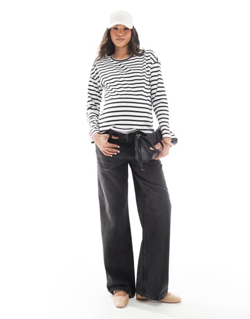 ASOS DESIGN Maternity - Jean dad large - Noir délavé