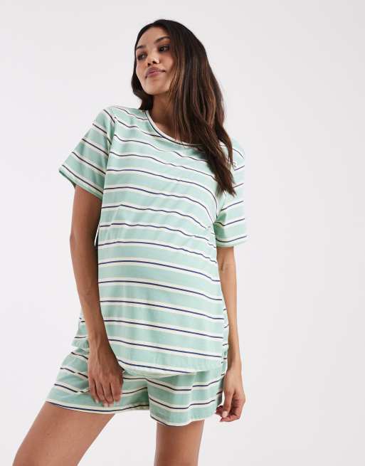ASOS DESIGN Maternity - Mix & Match - T-shirt de pyjama d'allaitement à rayures - Sauge et bleu