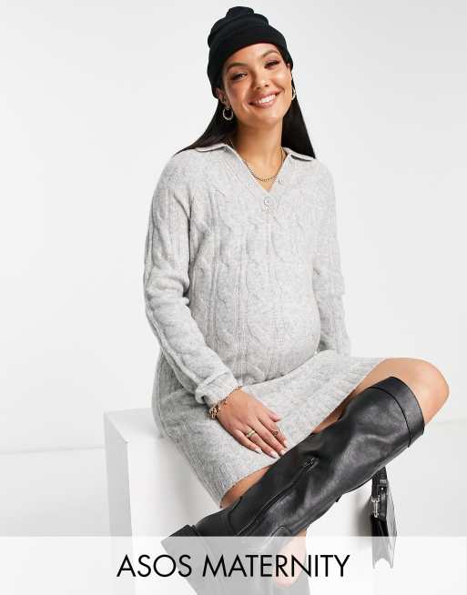 ASOS DESIGN Maternity - Robe courte en maille torsadée à col ouvert - Gris