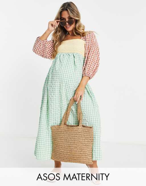 ASOS DESIGN Maternity - Robe froncée mi-longue à carreaux vichy variés
