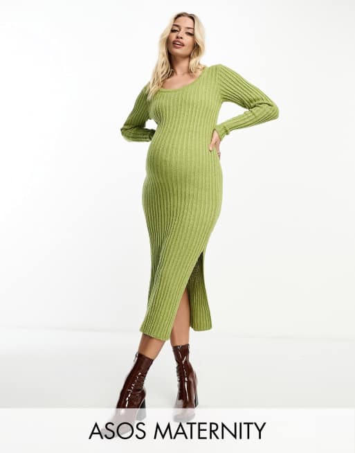ASOS DESIGN Maternity - Robe mi-longue en maille texturée avec encolure carrée - Vert