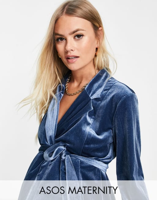 ASOS DESIGN Maternity - Tailleur croisé en velours - Bleu