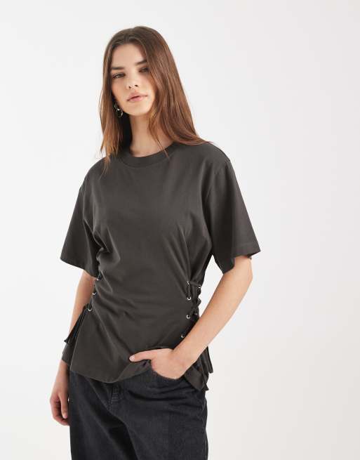ASOS DESIGN - T-shirt cintré à la taille avec liens noués sur les côtés - Anthracite