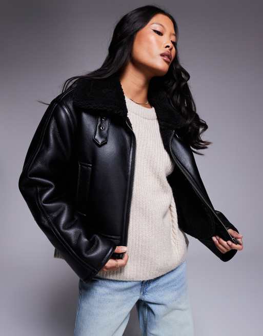 ASOS DESIGN Petite - Blouson aviateur à col cheminée - Noir