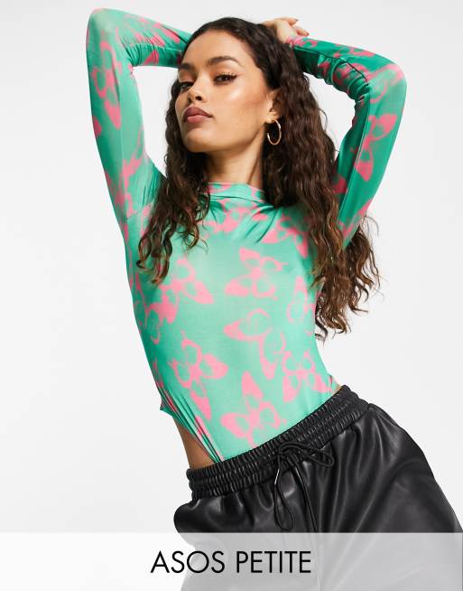 ASOS DESIGN Petite - Body à col montant et imprimé papillon