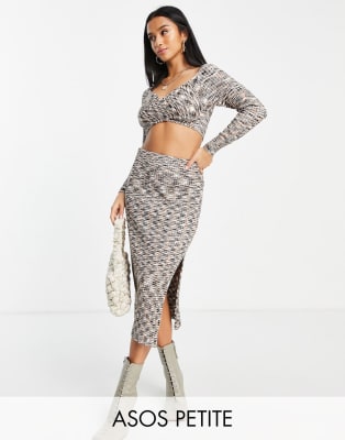 ASOS DESIGN Petite - Ensemble avec pull et jupe mi-longue en maille teinte par sections à découpes