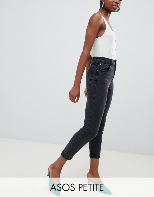 ASOS DESIGN Petite - Farleigh - Jean mom slim taille haute - Noir délavé
