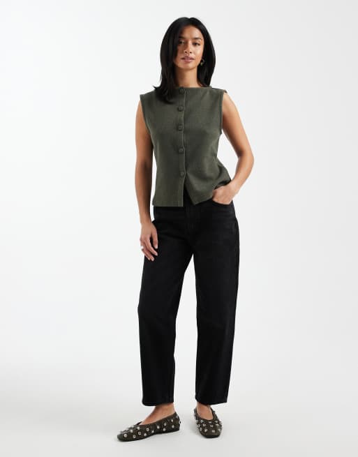 ASOS DESIGN Petite - Jean mom décontracté à taille haute - Noir