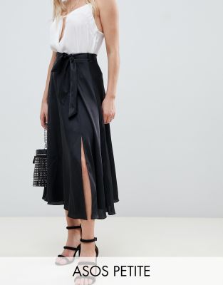 ASOS DESIGN Petite - Jupe mi-longue en satin avec lien à nouer