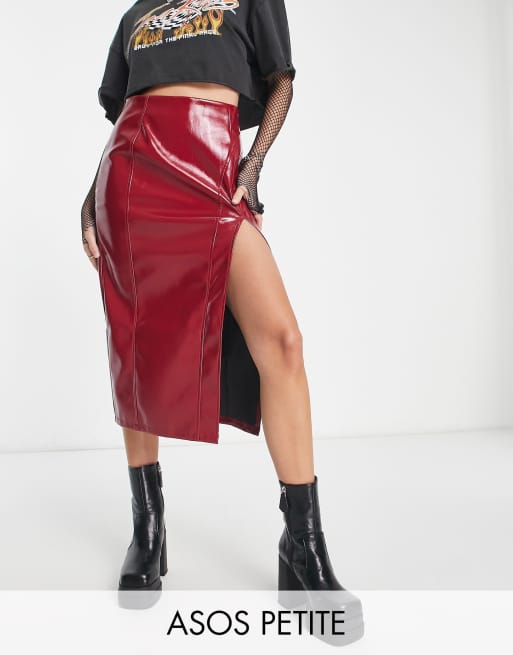 ASOS DESIGN Petite - Jupe mi-longue fendue en vinyle - Rouge
