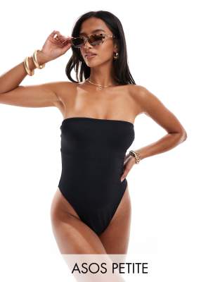 ASOS DESIGN Petite - Maillot 1 pièce épuré coupe bandeau - Noir