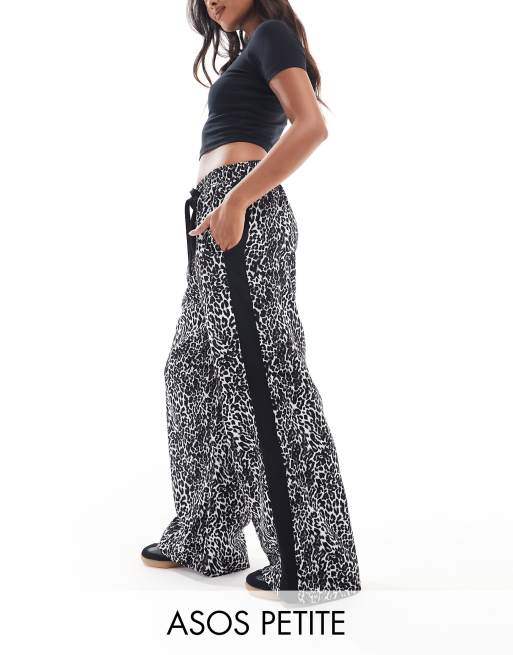ASOS DESIGN Petite - Pantalon à enfiler avec empiècement contrastant et imprimé animal - Noir et blanc
