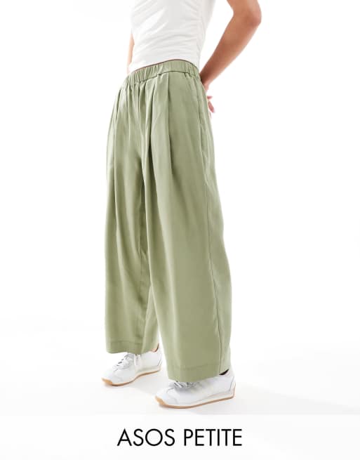 ASOS DESIGN Petite - Pantalon casual à enfiler de qualité supérieure avec pinces - Kaki délavé